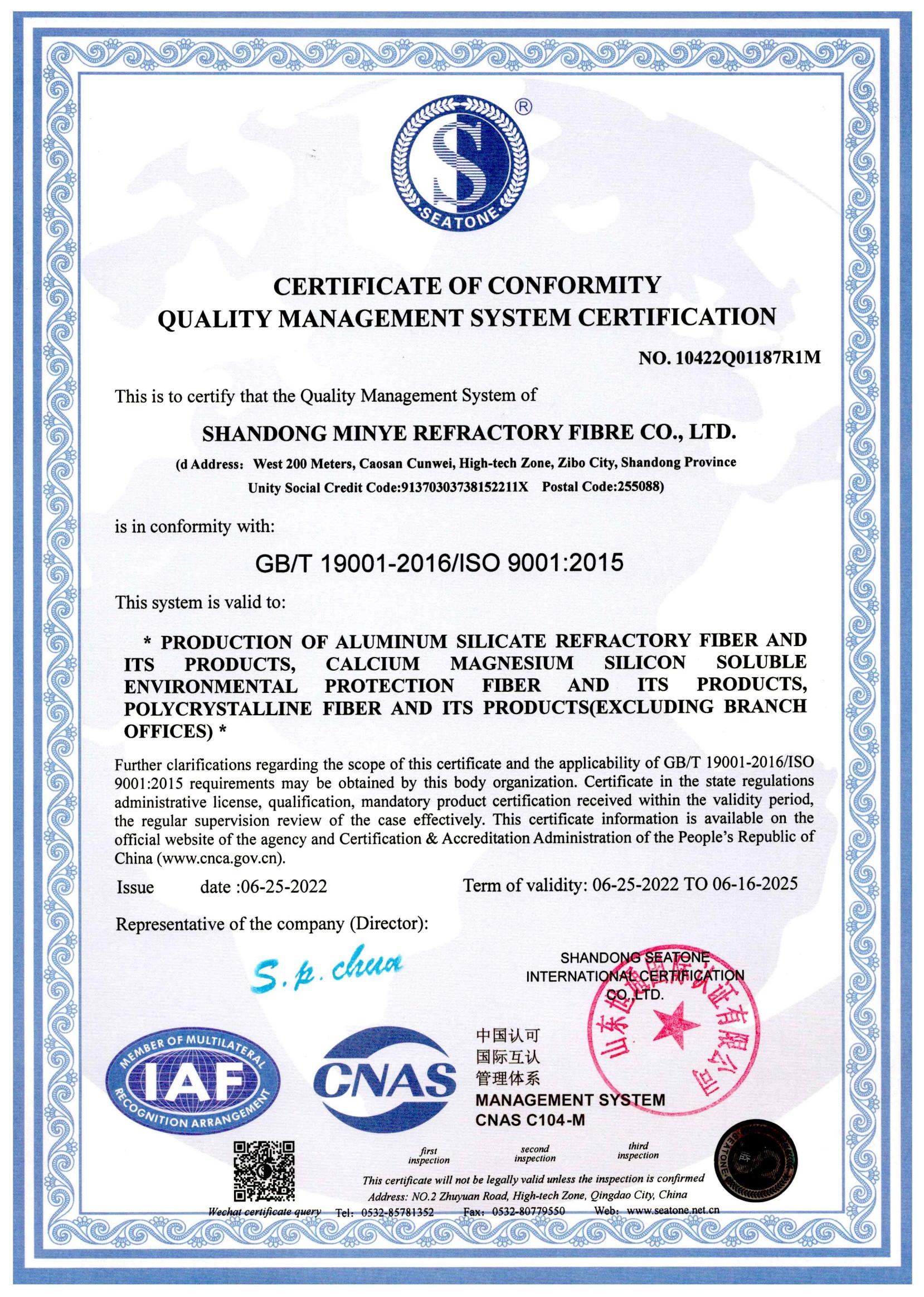 質(zhì)量管理體系認(rèn)證證書